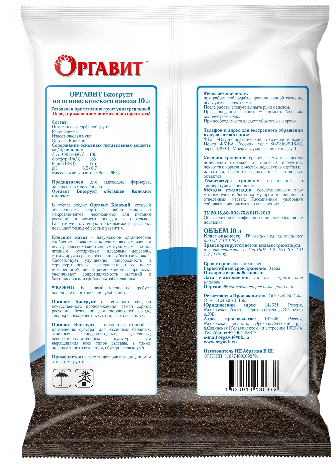Оргавит Биогрунт на основе Конского навоза